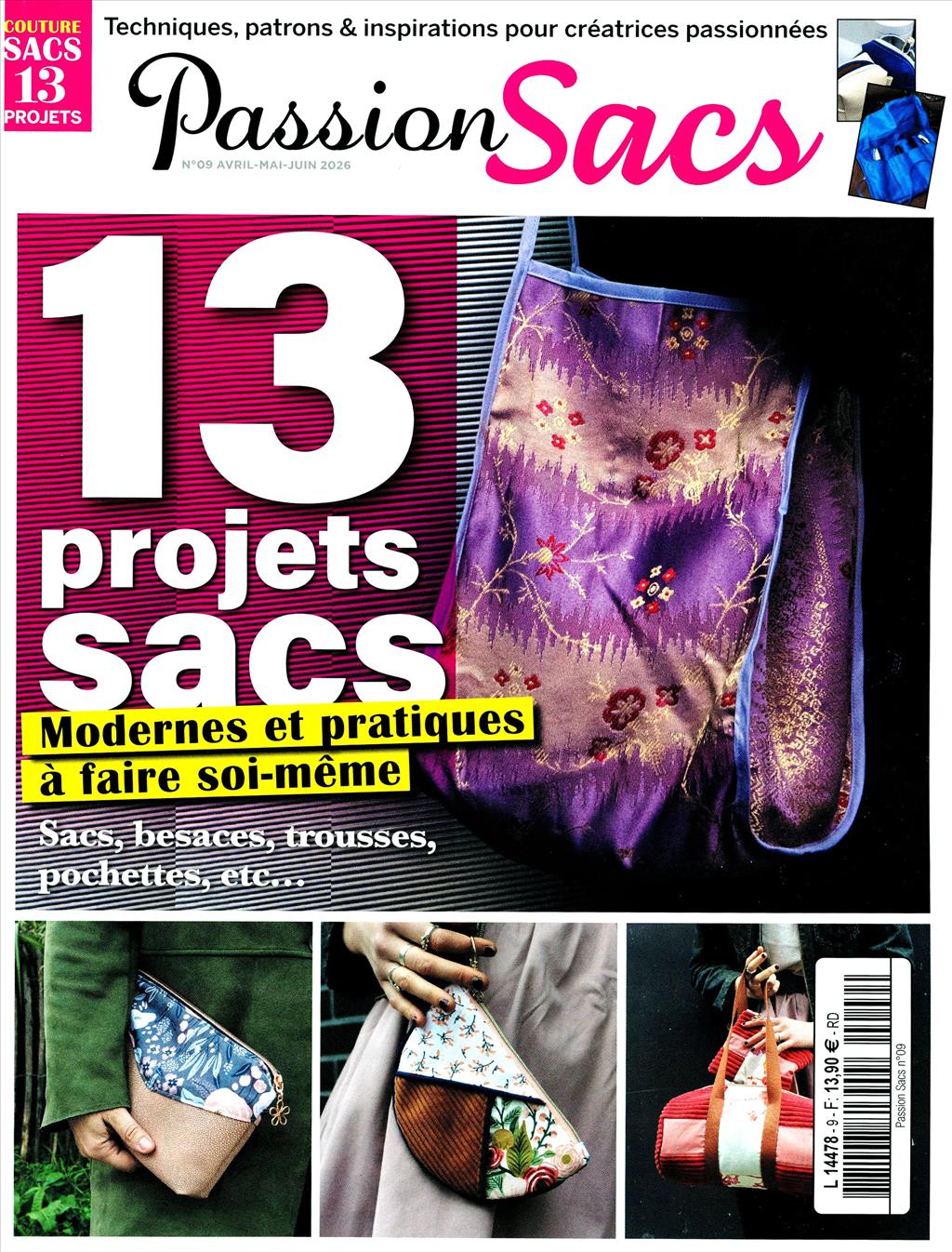 Magazine dédié à la couture de sacs. Des modèles tendances et inédits avec des patrons pour réaliser facilement des sacs, pochettes, cabas.