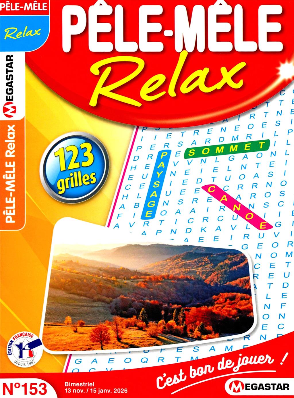 Magazine ludique composé de grilles de mots pêle-mêle, accompagné d'énigmes et de pages à thèmes divers et variés.