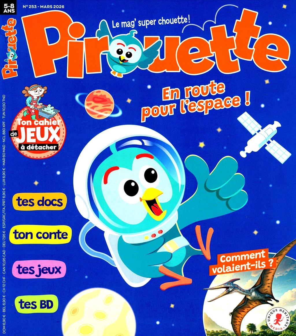 Des son entrée en grande section, la curiosité des enfants deborde et toutles interresse. Pirouette est un magazine dans lequel on retrouve des decouvertes en tout genre, des histoires, des BD, des dossiers illustrés pour répondre aux questions des enfants et un cahier de jeux à faire tout seul.