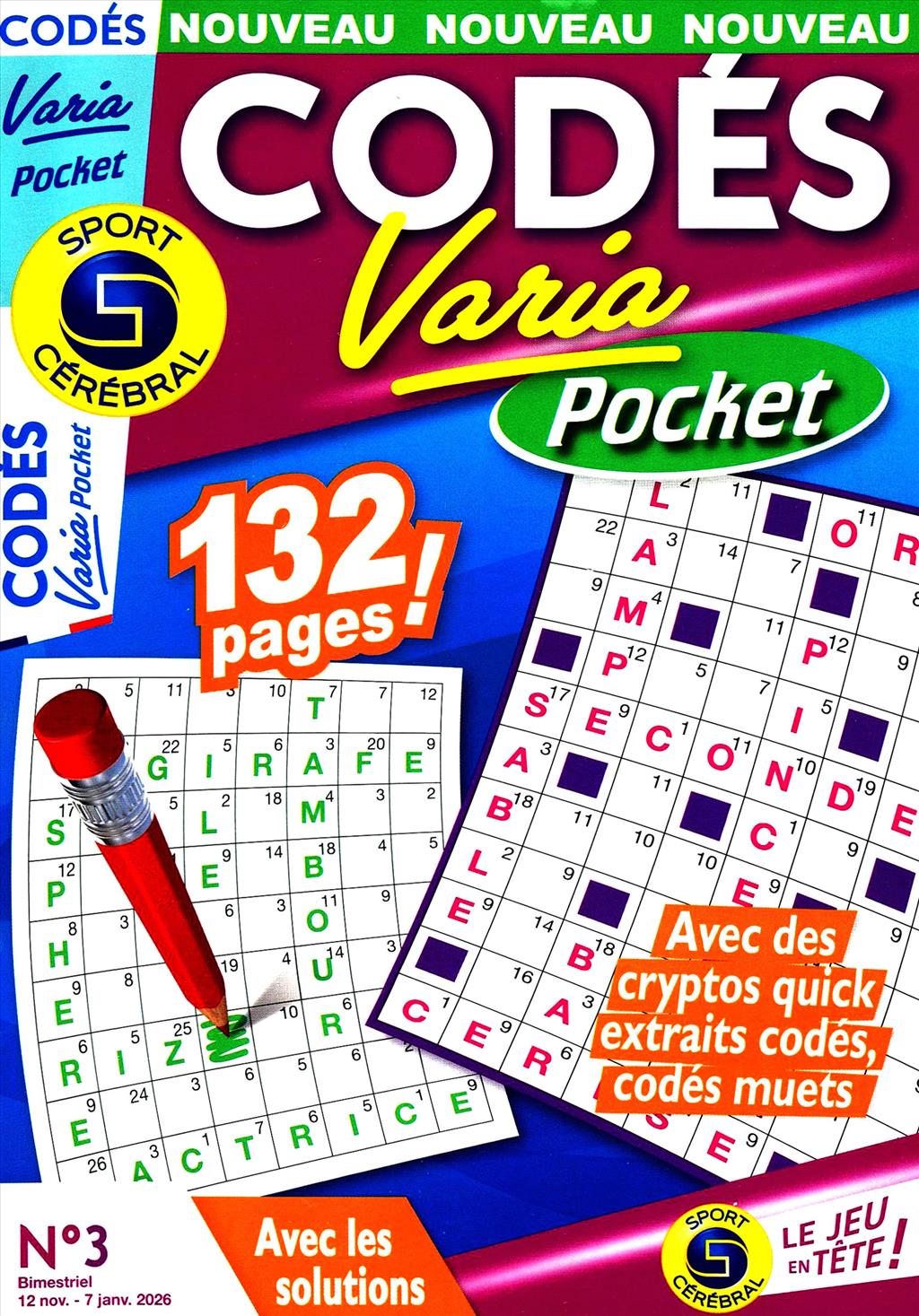Avec Codés Varia Pocket, SPORT CÉRÉBRAL® renouvelle sa collection de Codésavec un nouveau format aussi pratique que complet. Cette revue de 132 pages propose un savoureux mélange de codés classiques, cryptos quick, extraits codés et codés muets, pour varier les plaisirs et les défis à chaque page. Un concentré de jeux à emporter partout grâce à son format A5!