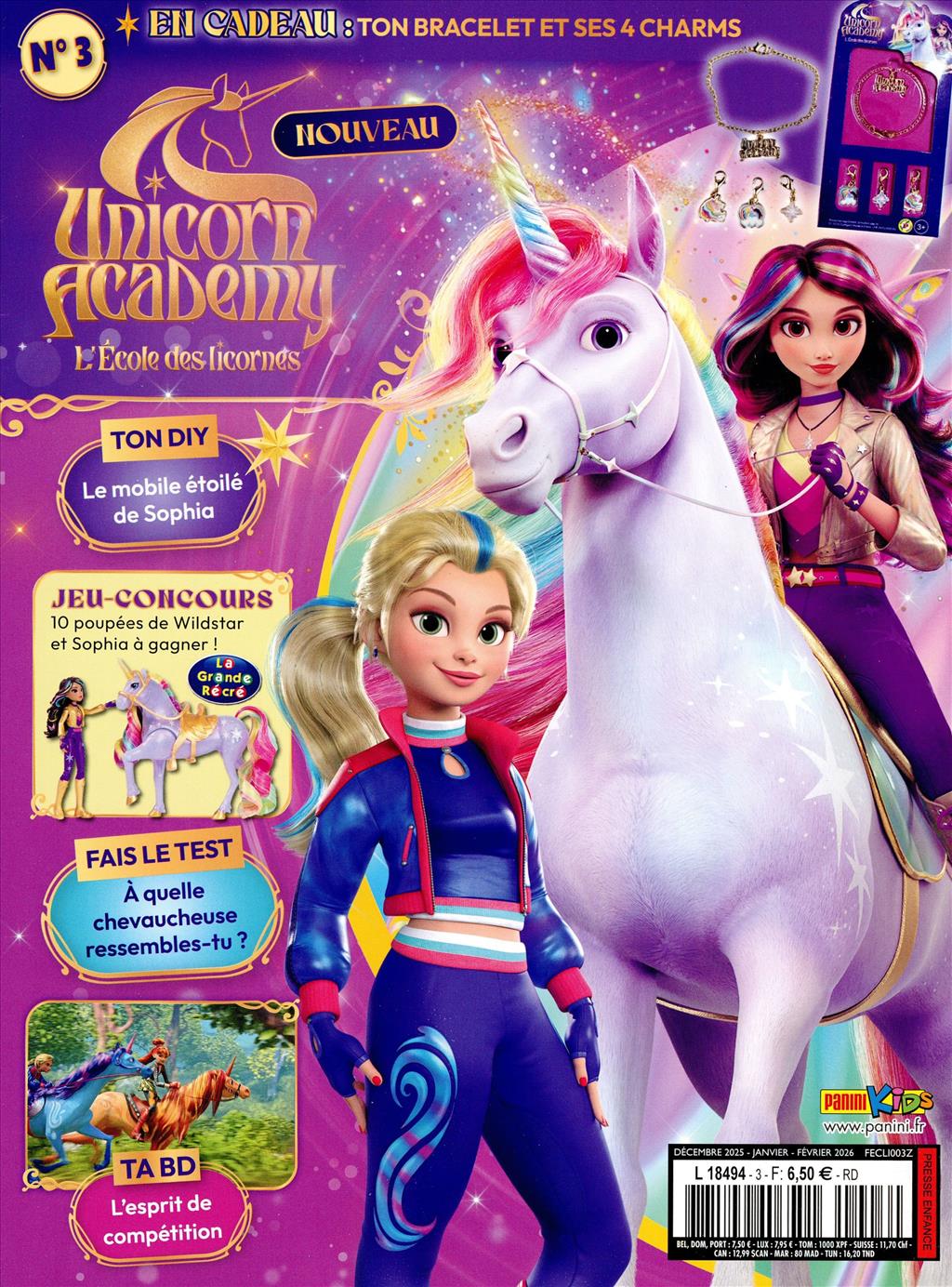 Voici le magazine officiel L'ECOLE DES LICORNES, la série d'animation qui fait fureur sur Netflix et Gulli! Une histoire captivante, des jeux, des coloriages et un cadeau exclusif au sommaire de chaque numéro!