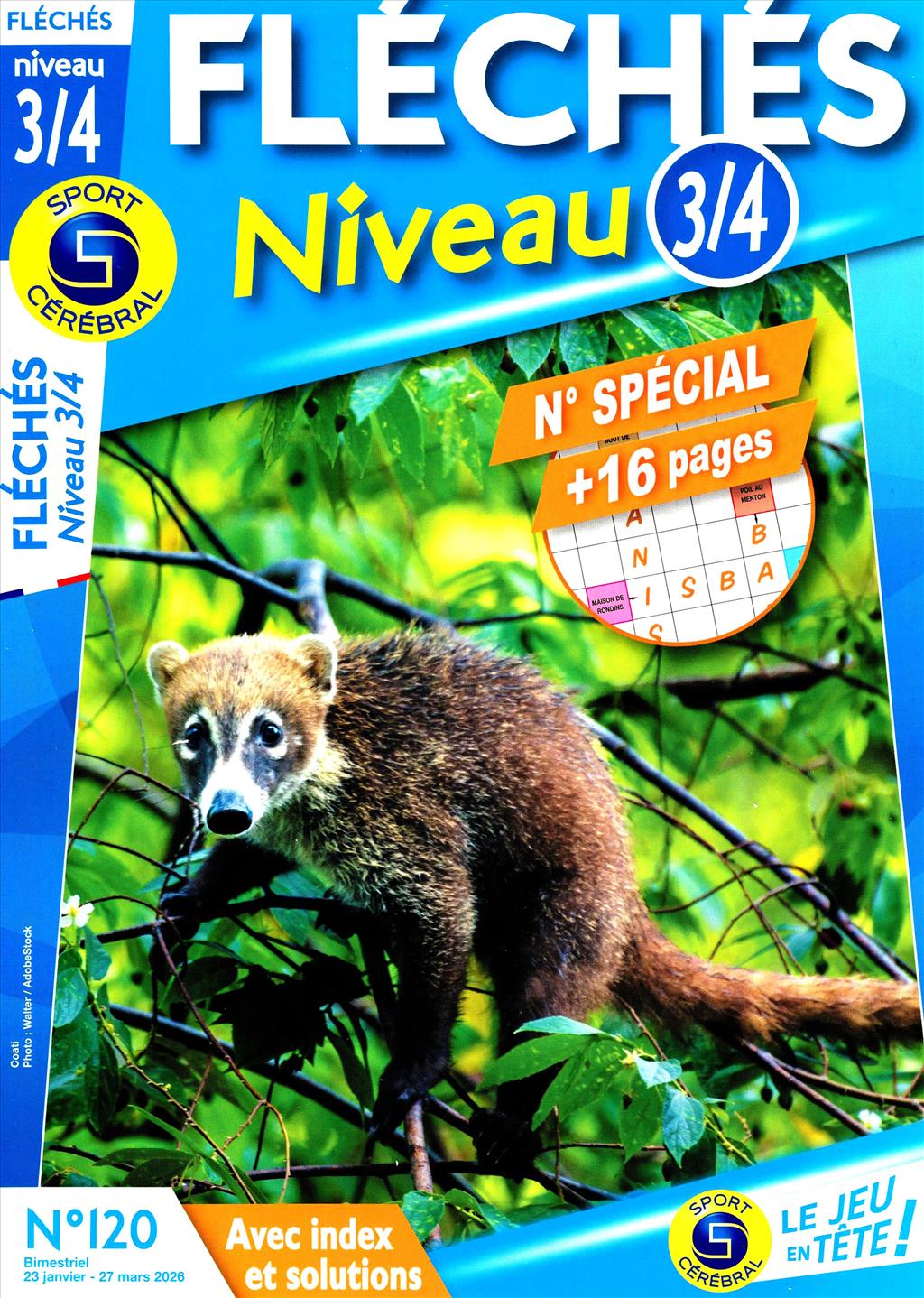 Magazine de mots fléchés grand format niveau 3/4 avec index et solutions.