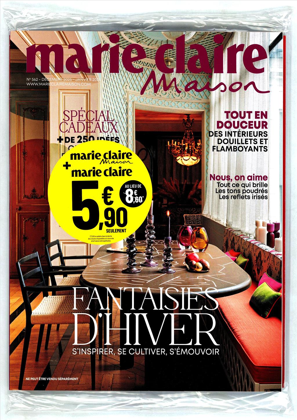 Magazine de décoration inspirationnelle, Marie Claire Maison accompagne les mutations qui animent la décoration et le design et anticipe celle de demain,pack avec le féminin Marie Claire..
