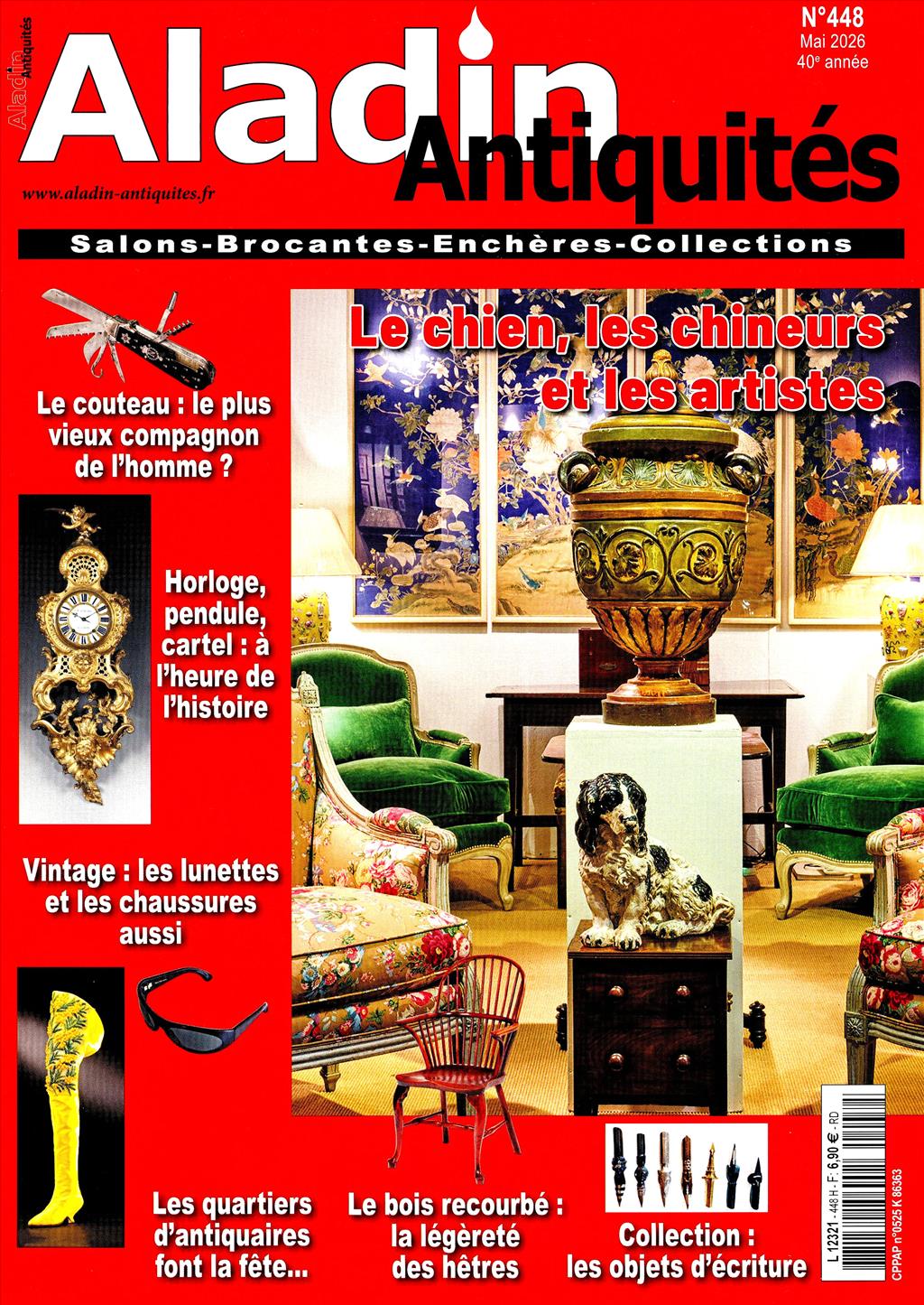 ALADIN ANTIQUITES est le magazine de référence sur le mobilier et les objets anciens. Les articles illustrés étudient les styles et les époques, mettent en scène des objets d'arts décoratifs et analysent l'actualité du marché.