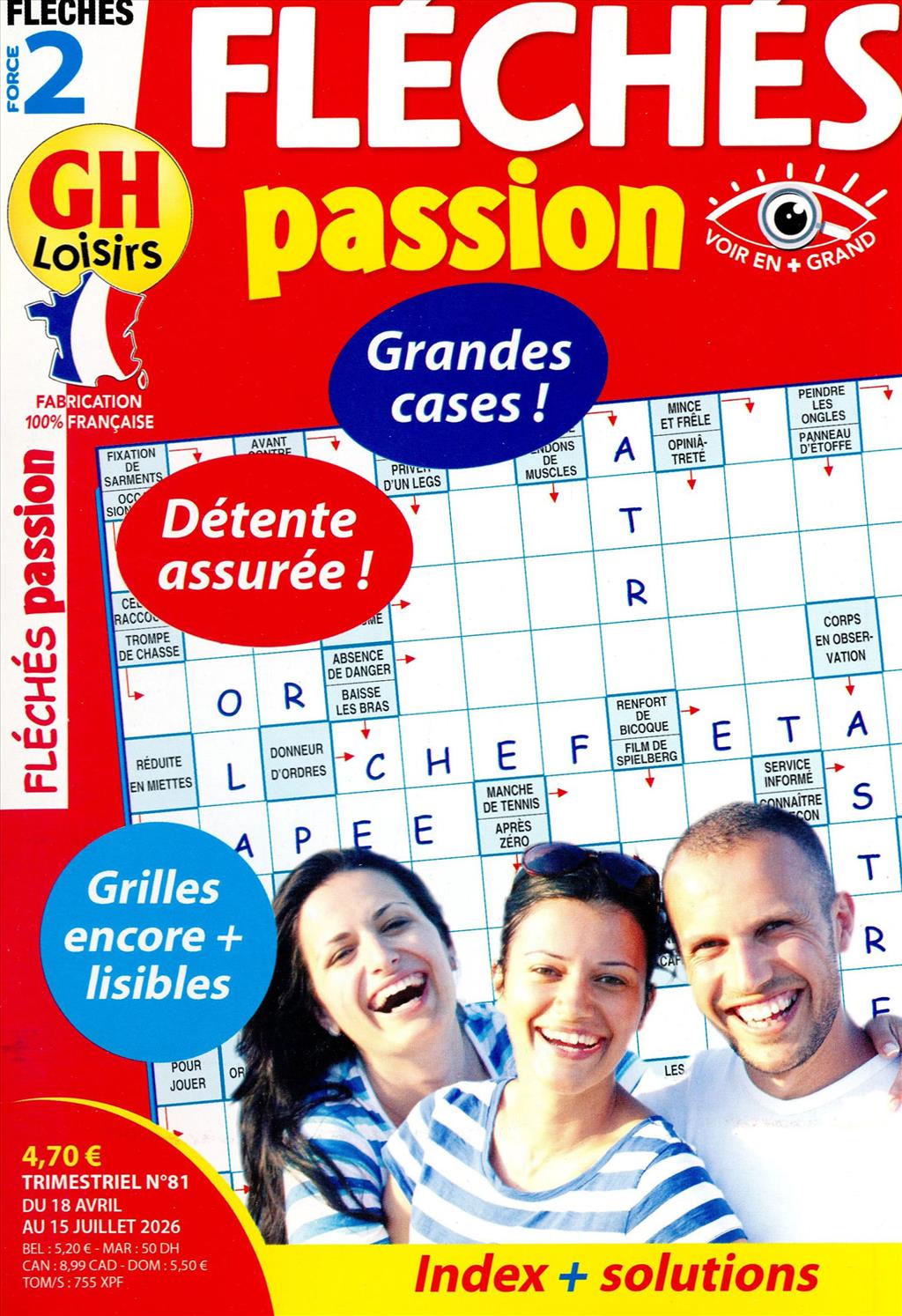 Grandes cases pour des grilles de mots fléchés de force 2, avec index et solutions.