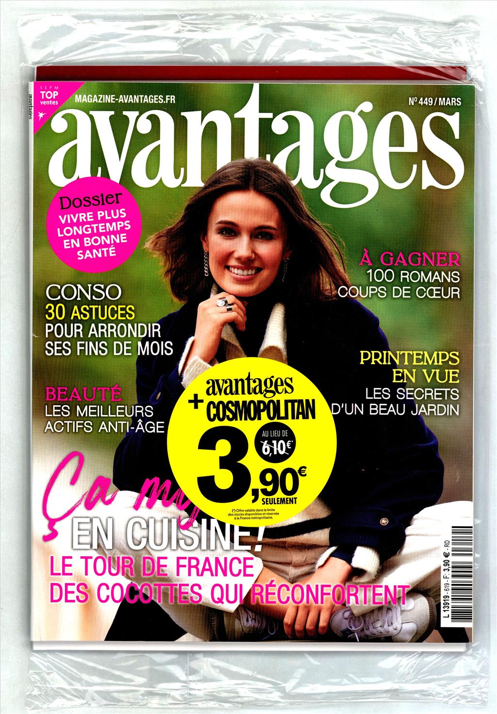 Offre couplée grand format du titre : AVANTAGES et COSMOPOLITAN, mélange parfait de conseils pratiques et inspirants pour améliorer votre quotidien. Astuces de vie abordables et conseils modes et beauté.