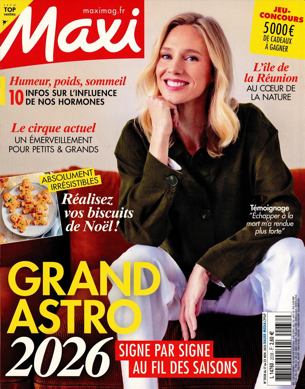 MAXI est un magazine féminin qui propose des conseils pratiques sur la mode, la beauté, la cuisine et le bien-être, ainsi que des idées inspirantes pour le quotidien.