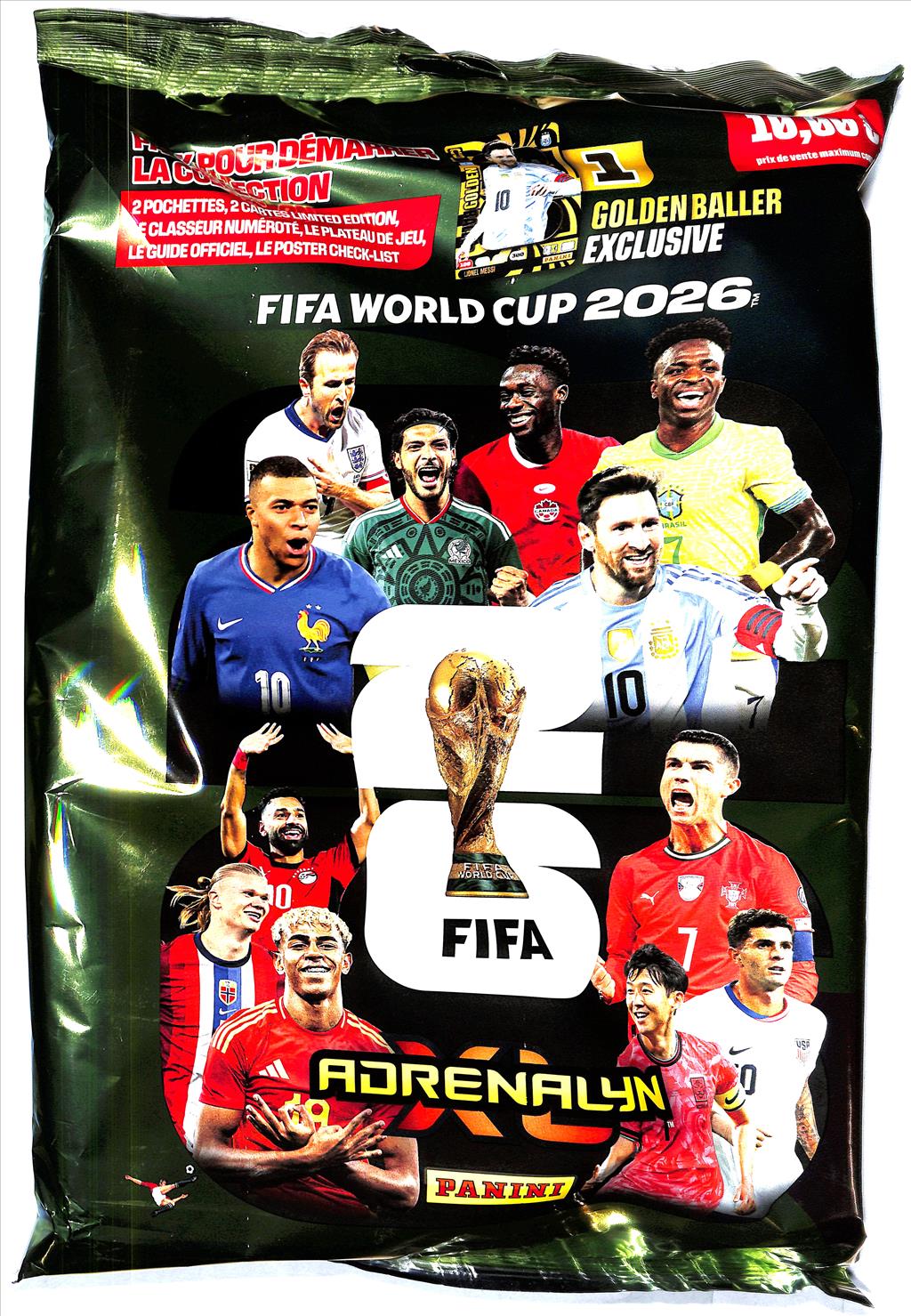 La collection Panini Coupe du Monde 2026 arrive : cartes officielles, stars internationales, passion à collectionner. 1 starter contient 1 classeur + 1 terrain de jeu + 1 magazine + 2 pochettes + 1 golden baller + 2 cartes en édition limitée.