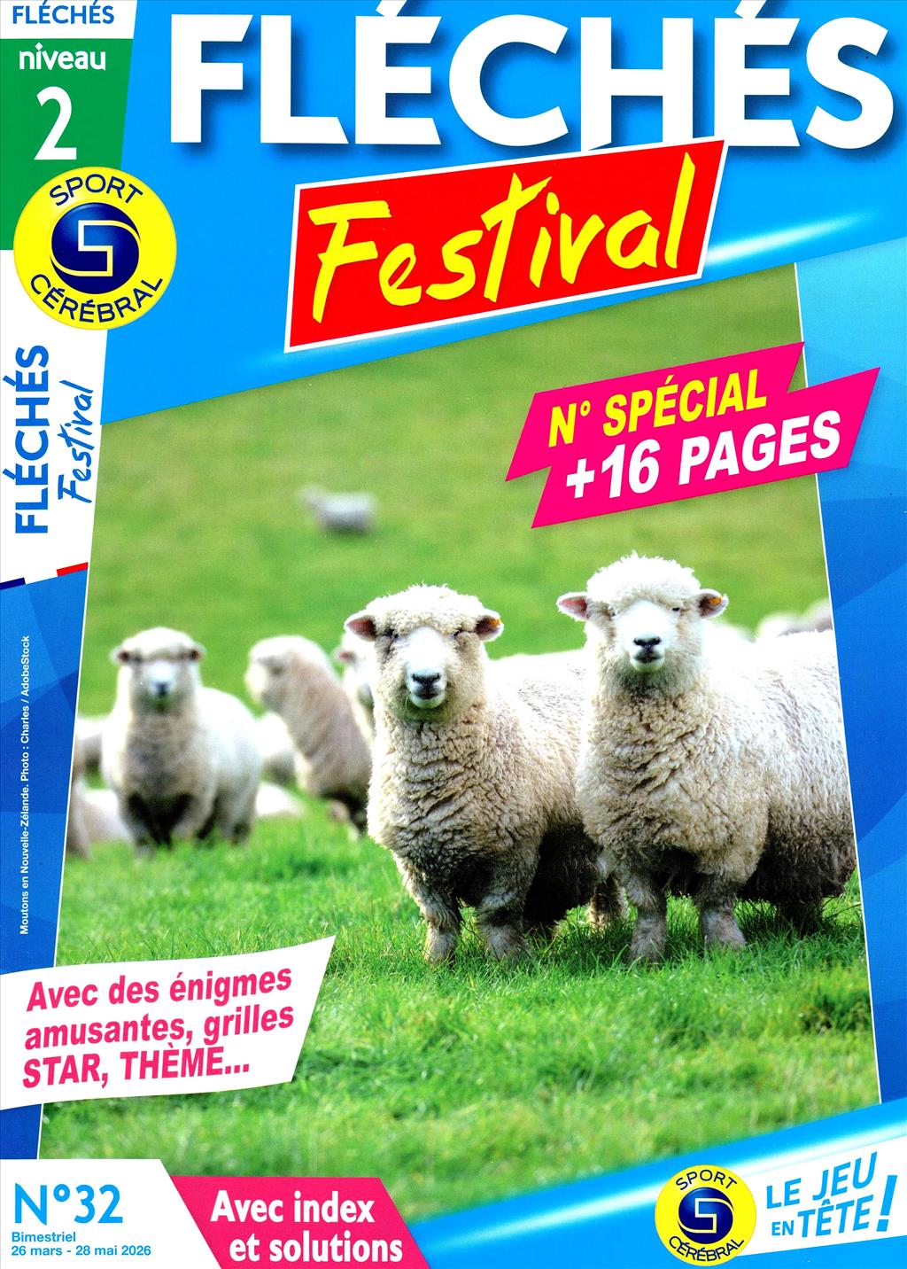 Revue de mots fléchés avec 70 grilles faciles et de nombreux jeux : des grilles fléchées stars, thématiques, dingbats, des énigmes et des jeux de mots.