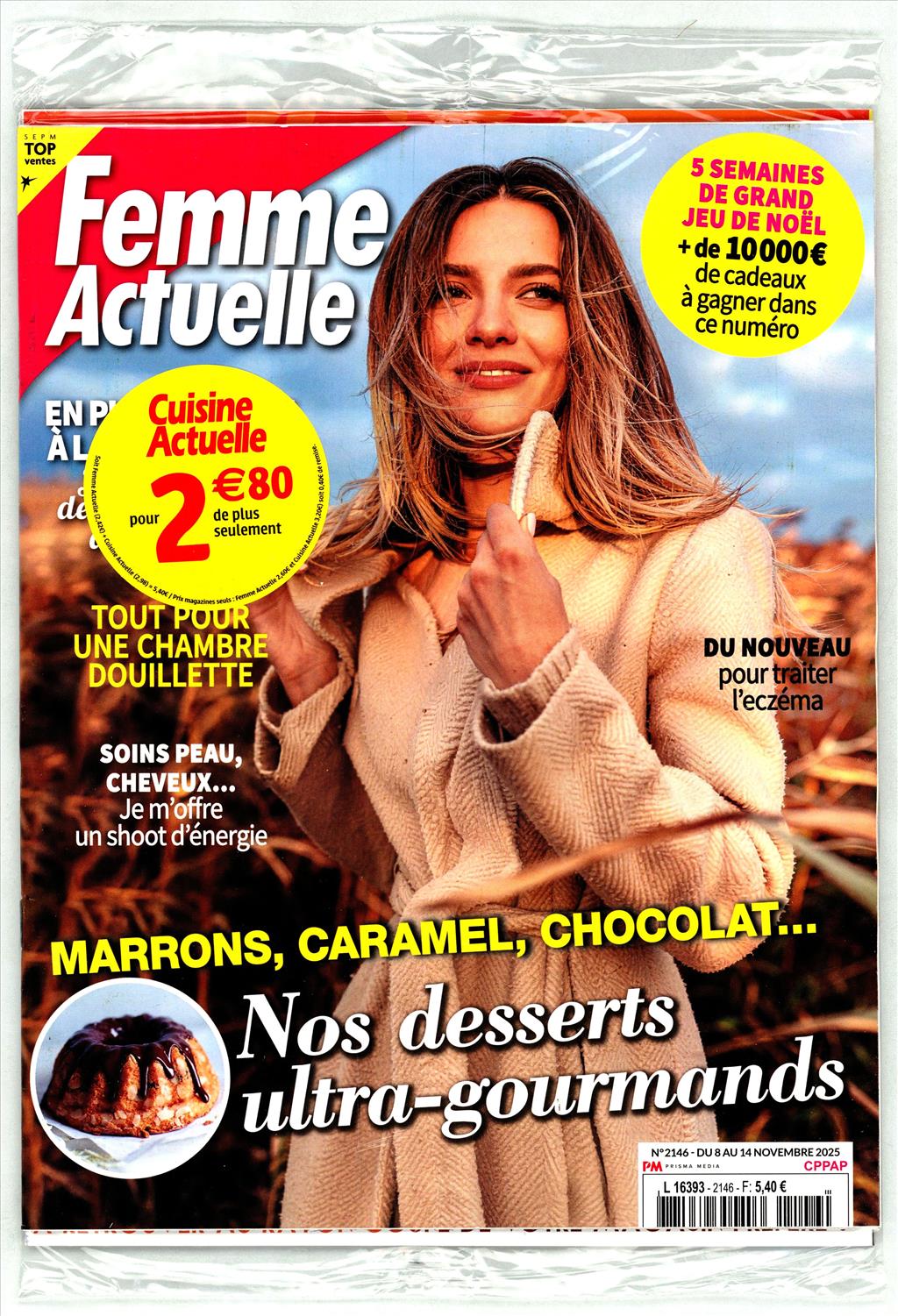 "FEMME ACTUELLE DUO CUISINE ACTUELLE" est une édition spéciale qui combine conseils lifestyle de "Femme Actuelle" avec des recettes gourmandes de "Cuisine Actuelle". Il propose astuces de bien-être, idées déco, et menus saisonniers pour toute la famille.