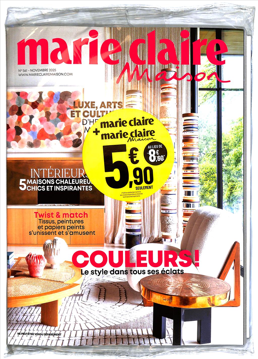 Magazine de décoration inspirationnelle, Marie Claire Maison accompagne les mutations qui animent la décoration et le design et anticipe celle de demain,pack avec le féminin Marie Claire..