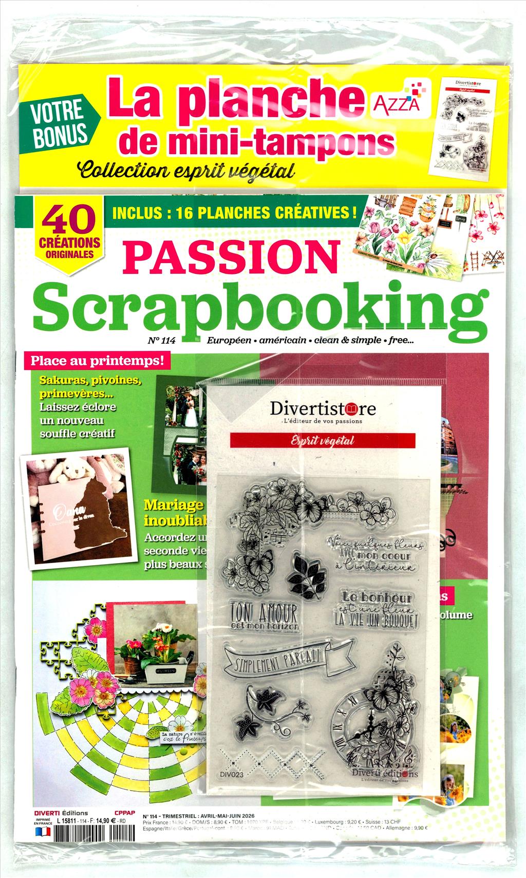 Des modèles, objets ou encore mini-albums sont présentés et détaillés en pas à pas. Reportages, trucs et astuces, courrier des lecteurs et concours. C'est "LE" magazine de référence sur le scrapbooking dans les 2 styles européen et américain.