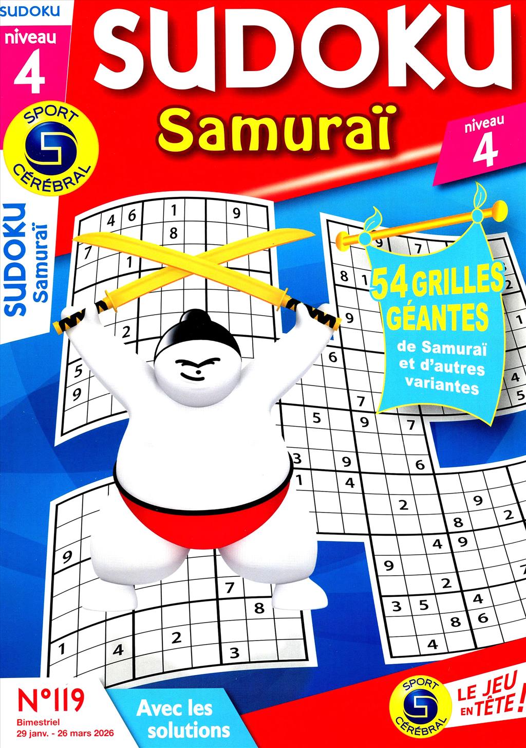 Magazine consacré au jeu de logique du Sudoku. Plus de 50 grilles géantes niveau 4.