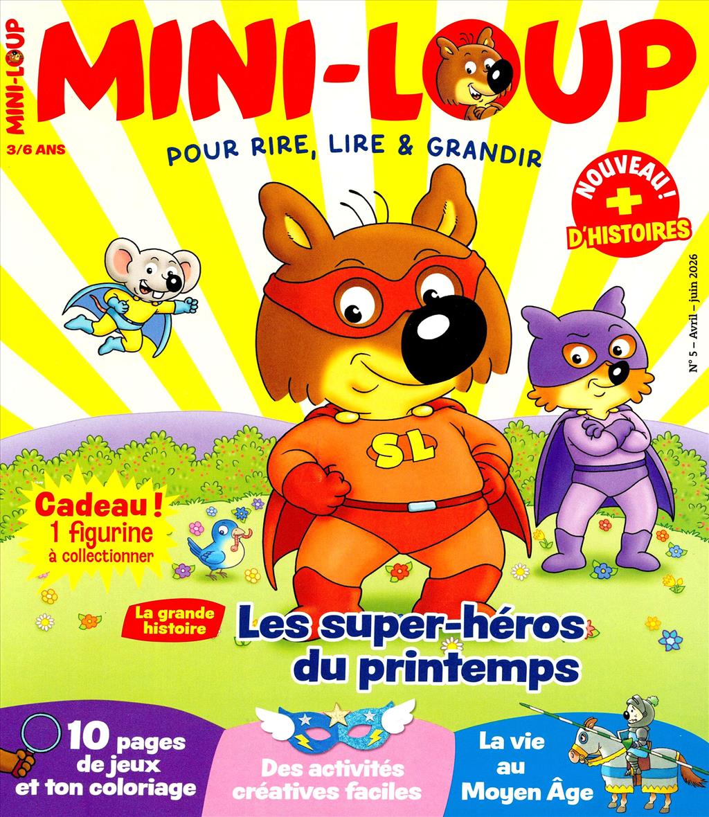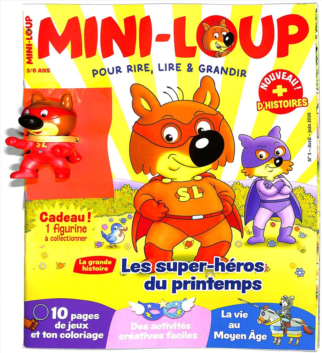 Magazine à destination des enfants de 3 à 6 ans avec figurine Mini-loup sous blister. Dans chaque numéro, des contenus riches et qualitatifs pour permettre de rire, lire et grandir; une grande histoire de Mini-Loup, des jeux, des devinettes pour développer la créativité.