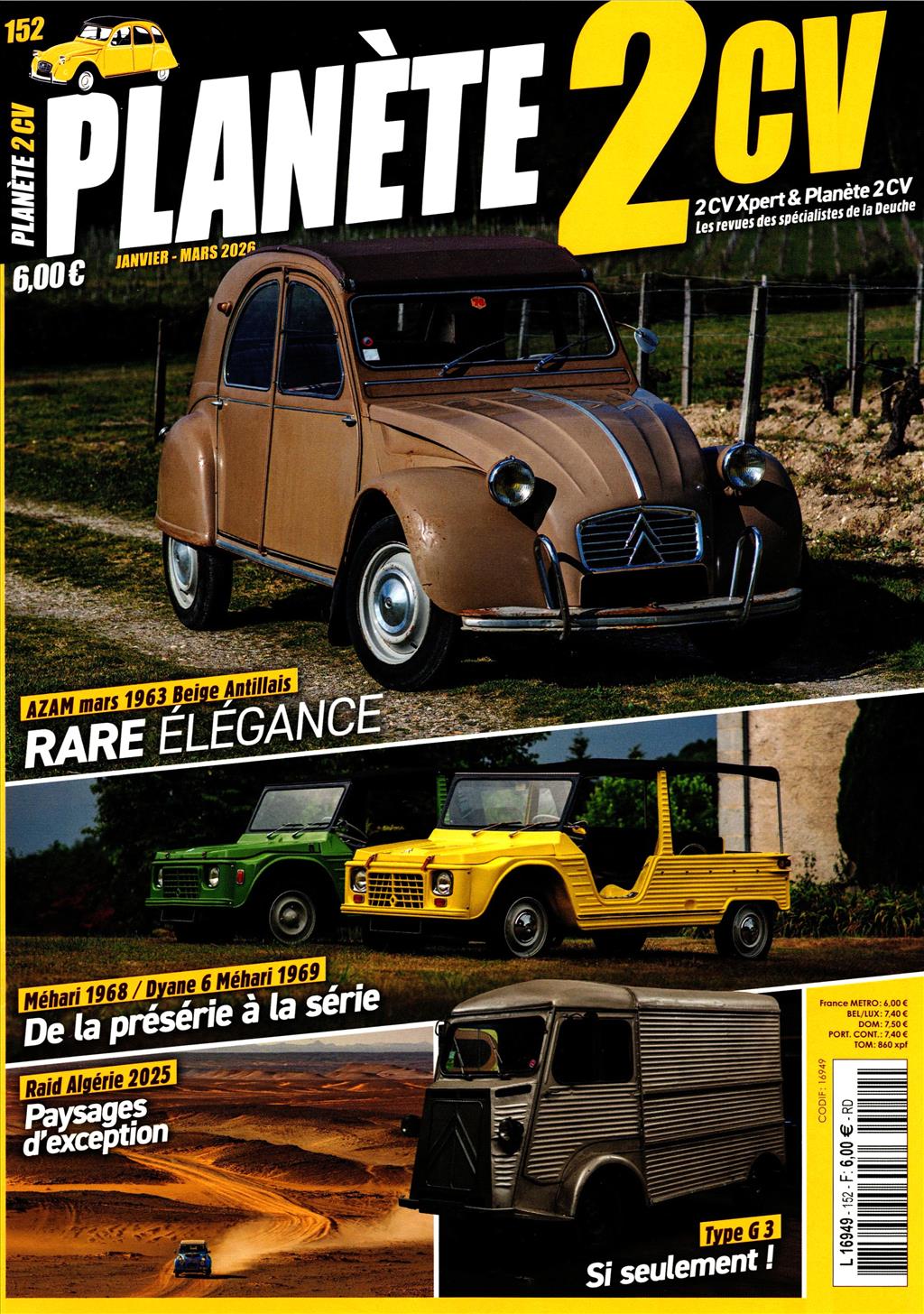 Magazine dédié à l'iconique Citroën 2CV, explorant son histoire, ses restaurations et ses événements. Il offre des articles détaillés sur la culture autour de ce véhicule emblématique.