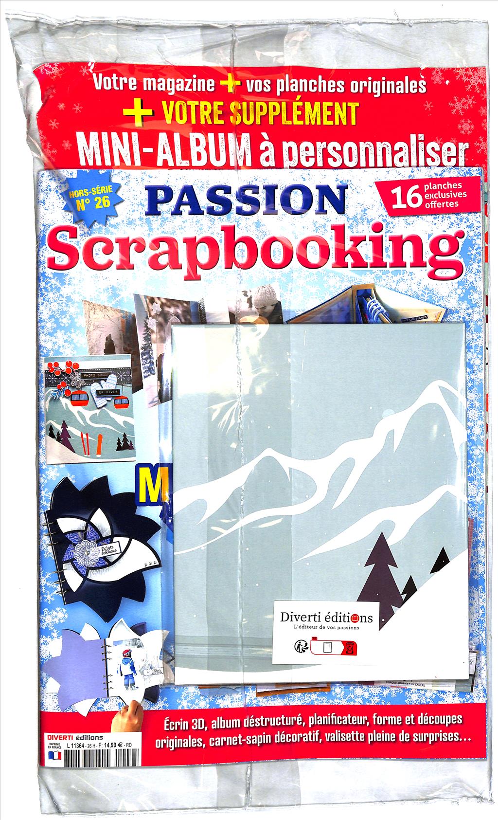 HS de Passion scrapbooking : Des modèles, objets ou encore mini-albums sont présentés et détaillés. Reportages, trucs et astuces, courrier des lecteurs et concours. C'est "LE" magazine de référence dans les 2 styles européen et américain.