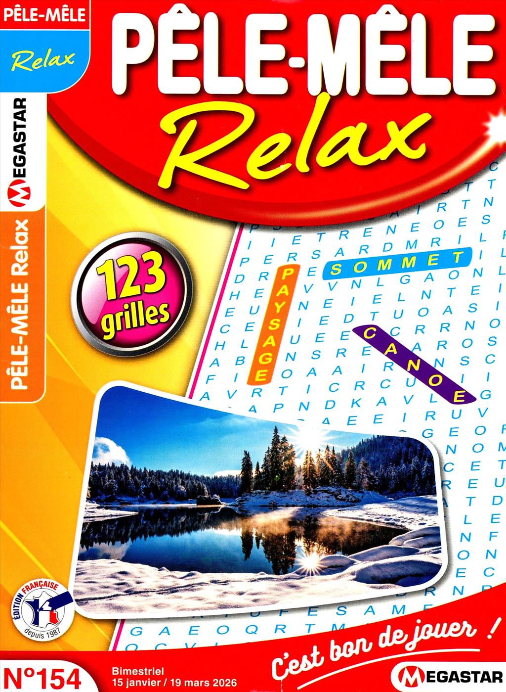 Magazine ludique composé de grilles de mots pêle-mêle, accompagné d'énigmes et de pages à thèmes divers et variés.