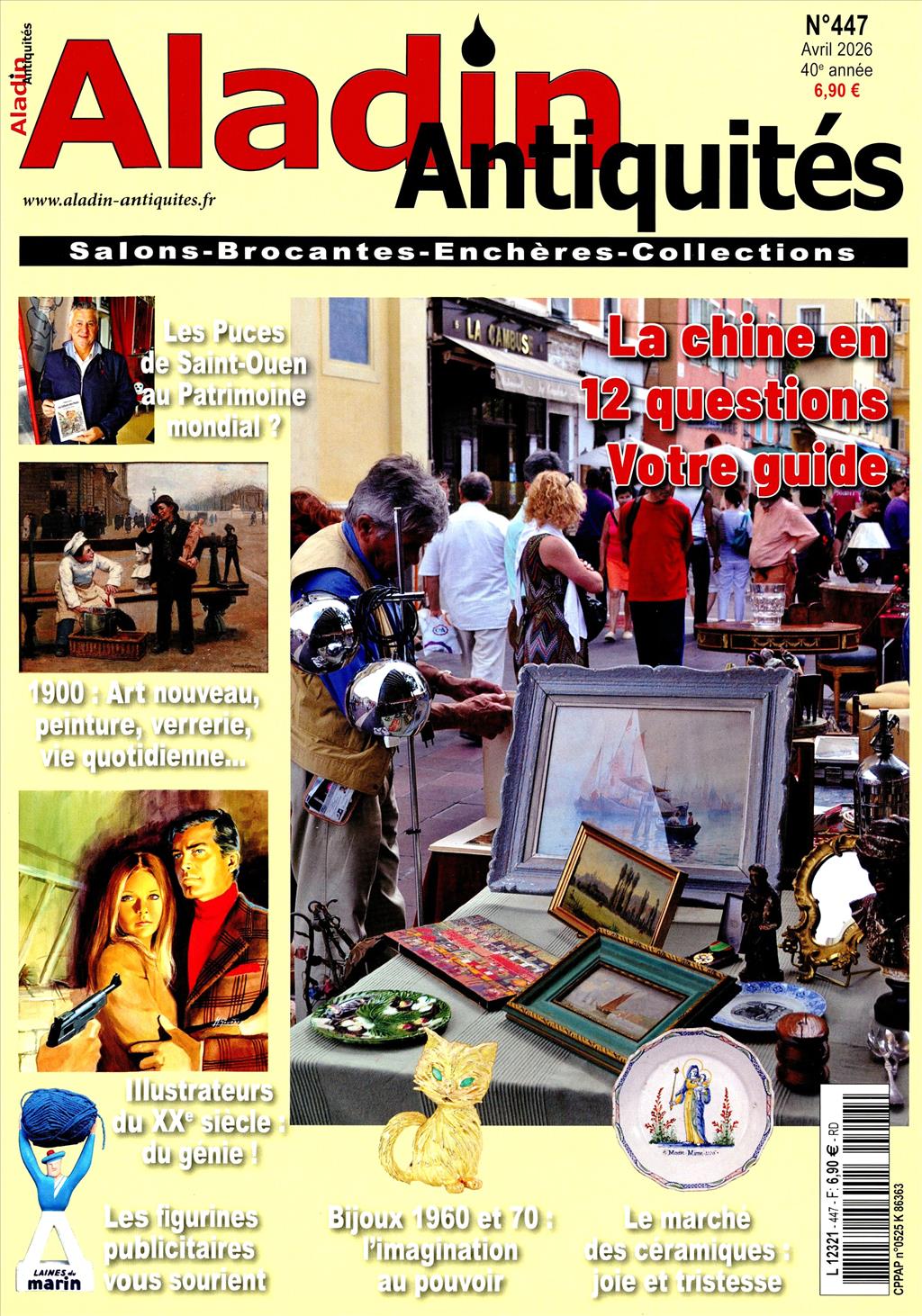 ALADIN ANTIQUITES est le magazine de référence sur le mobilier et les objets anciens. Les articles illustrés étudient les styles et les époques, mettent en scène des objets d'arts décoratifs et analysent l'actualité du marché.