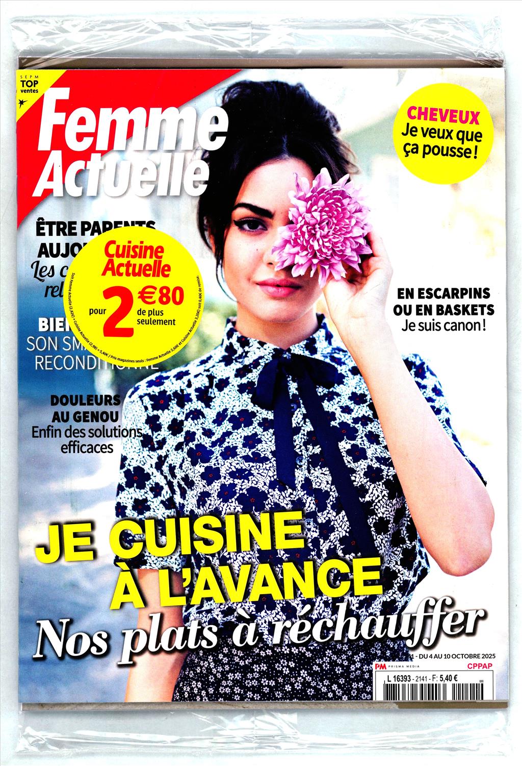 "FEMME ACTUELLE DUO CUISINE ACTUELLE" est une édition spéciale qui combine conseils lifestyle de "Femme Actuelle" avec des recettes gourmandes de "Cuisine Actuelle". Il propose astuces de bien-être, idées déco, et menus saisonniers pour toute la famille.