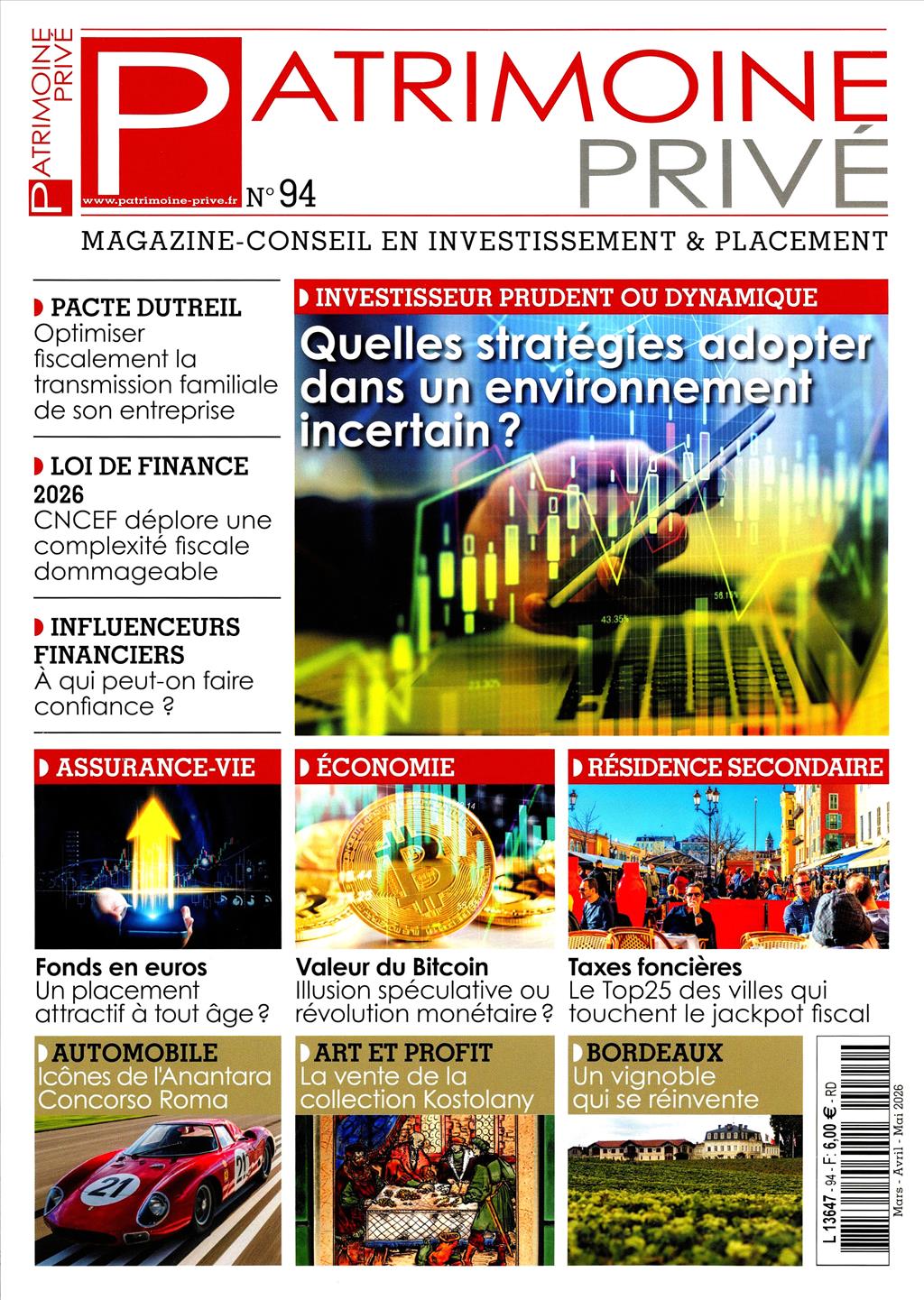 Magazine qui a pour spécialité le conseil en investissement et placement. Retrouvez les rubriques traitant de la gestion, de l'immobilier, le patrimoine, mais aussi de l'automobile, des montres, de l'art.