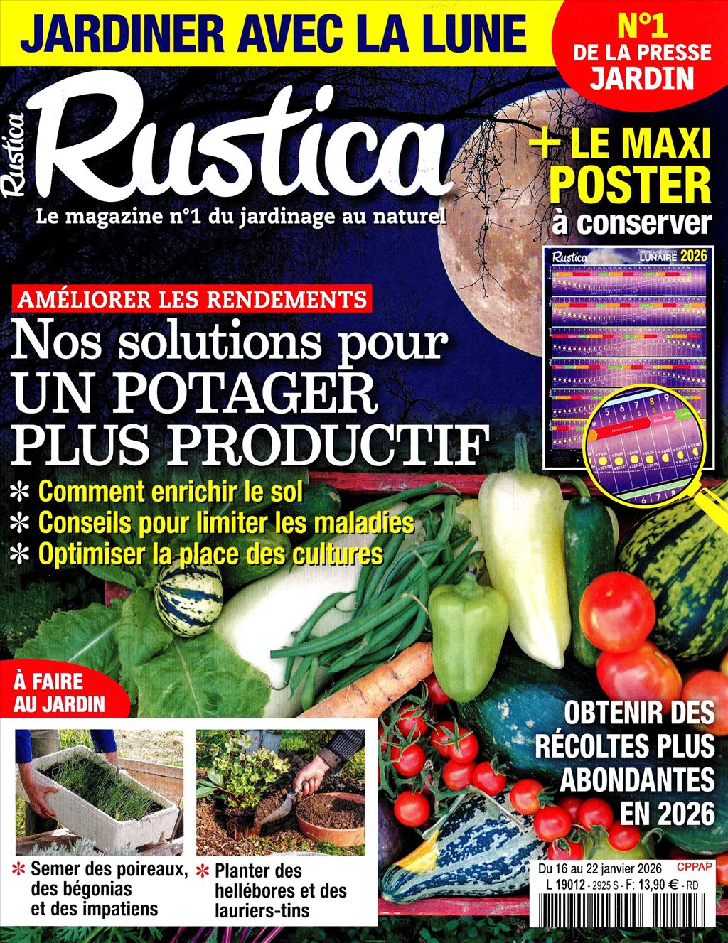 Publication dédiée aux jardiniers et amateurs de nature qui souhaitent s'inspirer des cycles lunaires pour optimiser leurs activités de jardinage et en prendre soin. Magazine accompagné du magazine MAXI