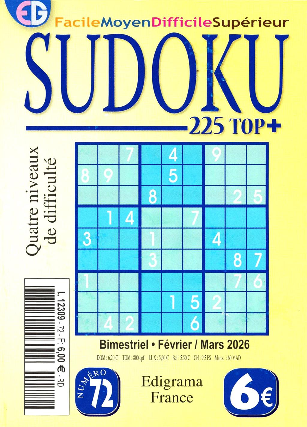 Magazine dédié au jeu de logique du Sudoku. Plus de 50 grilles défis de différents niveaux, avec solutions.