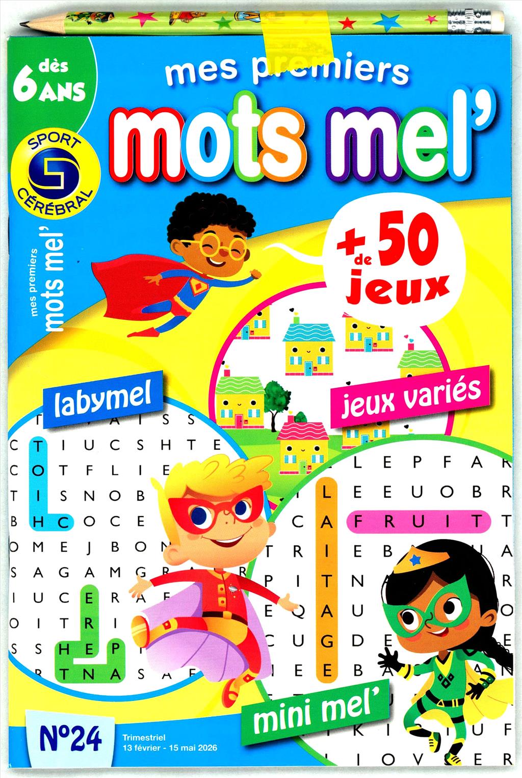 Magazine de mots mêlés pour les enfants à partir de 6 ans (petit format). Cette revue compte également d'autres jeux : Labyrinthe, points à relier, croisé-dessiné et des jeux surprises.