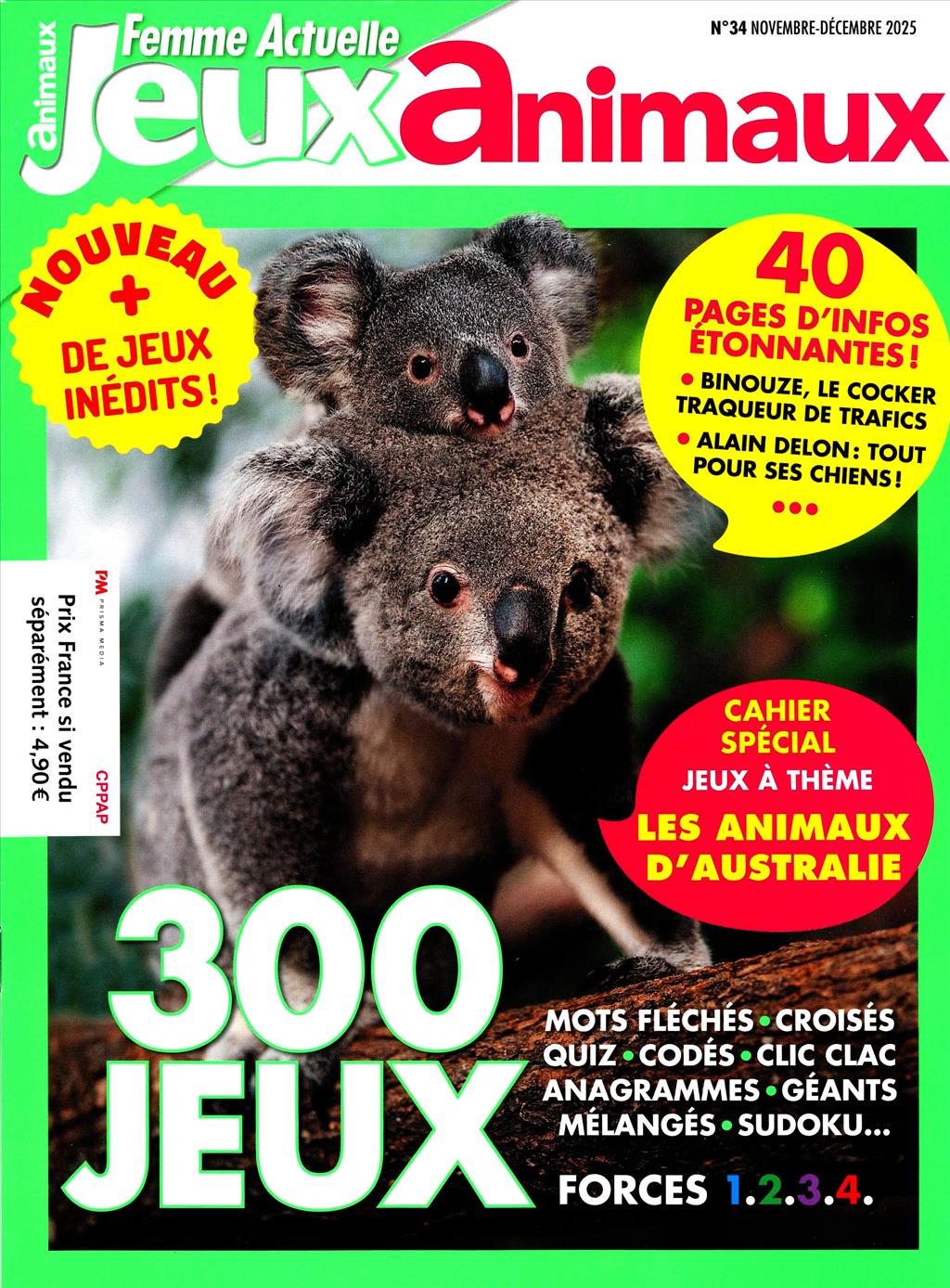 Magazine de divertissement offrant une variété de jeux (mots fléchés, sudoku, quiz), souvent sur des thèmes de culture générale ou actualités. Magazine spécialisé dans les jeux autour des animaux, avec des énigmes et des quiz éducatifs pour les amateurs de faune.