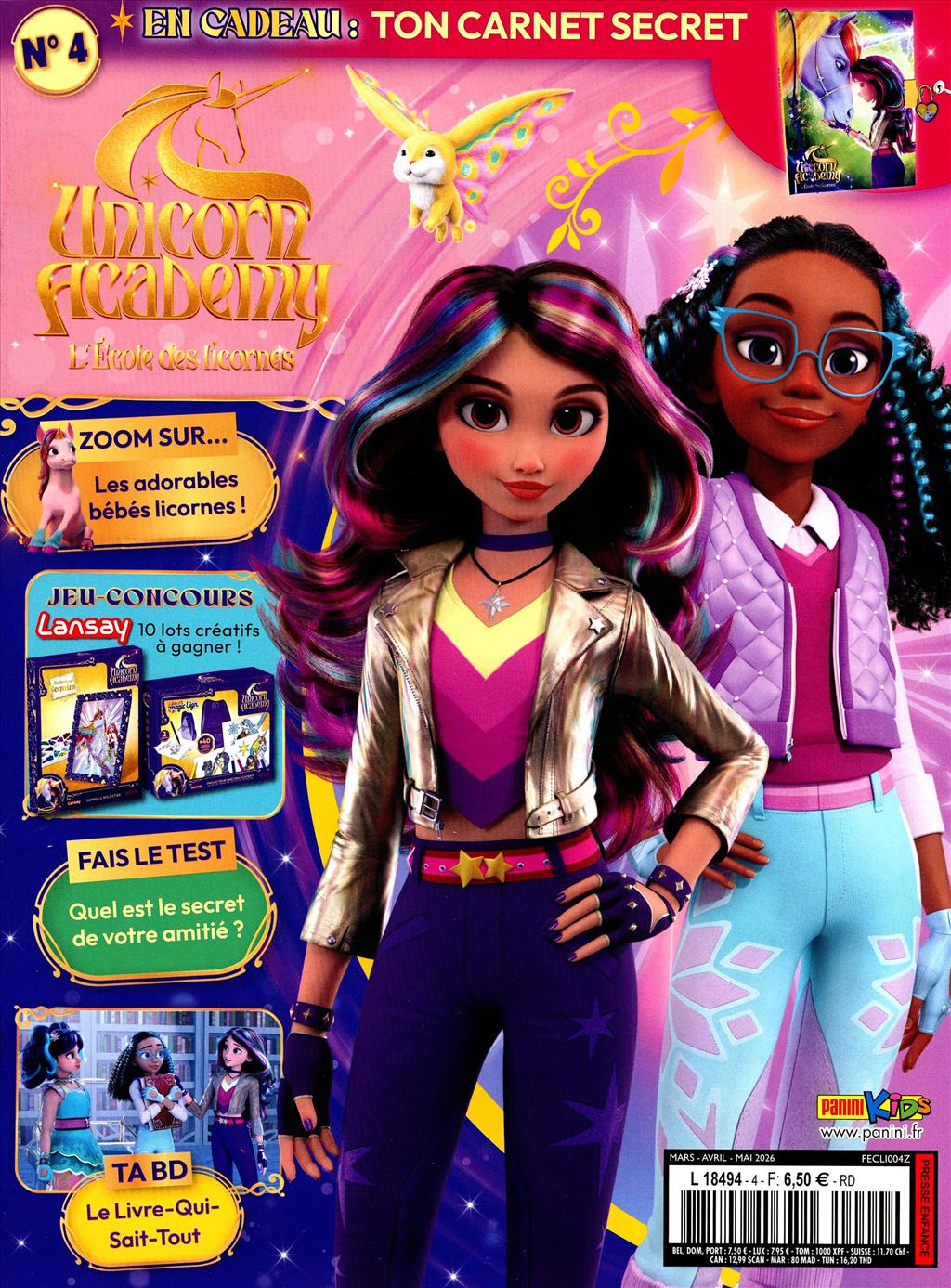 Voici le magazine officiel L'ECOLE DES LICORNES, la série d'animation qui fait fureur sur Netflix et Gulli! Une histoire captivante, des jeux, des coloriages et un cadeau exclusif au sommaire de chaque numéro!