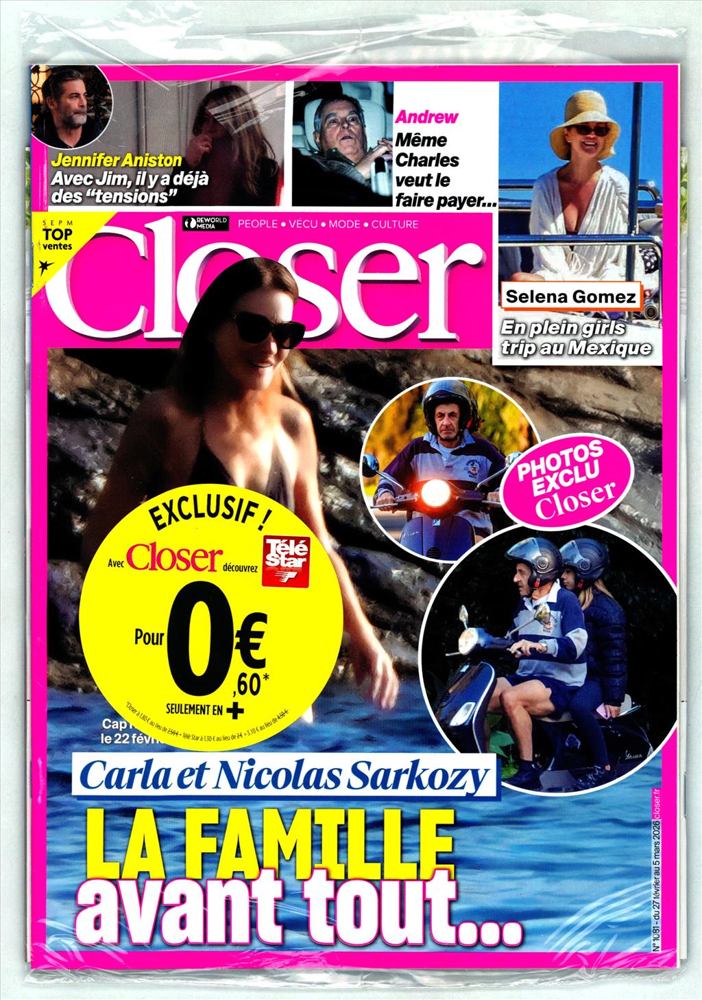 Offre couplée Télé Star accompagné de Closer : Toute l'actualité people, des histoires vécues, des conseils mode et l'intégralité du programme télé.