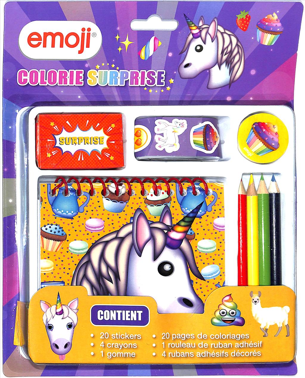 Coffret pour coloriage décliné sous 2 licences : EMOJI LICORNE et LOL. Ce coffret contient 20 stickers, 20 feuilles de coloriage, 4 crayons, 1 gomme et 1 surprise.